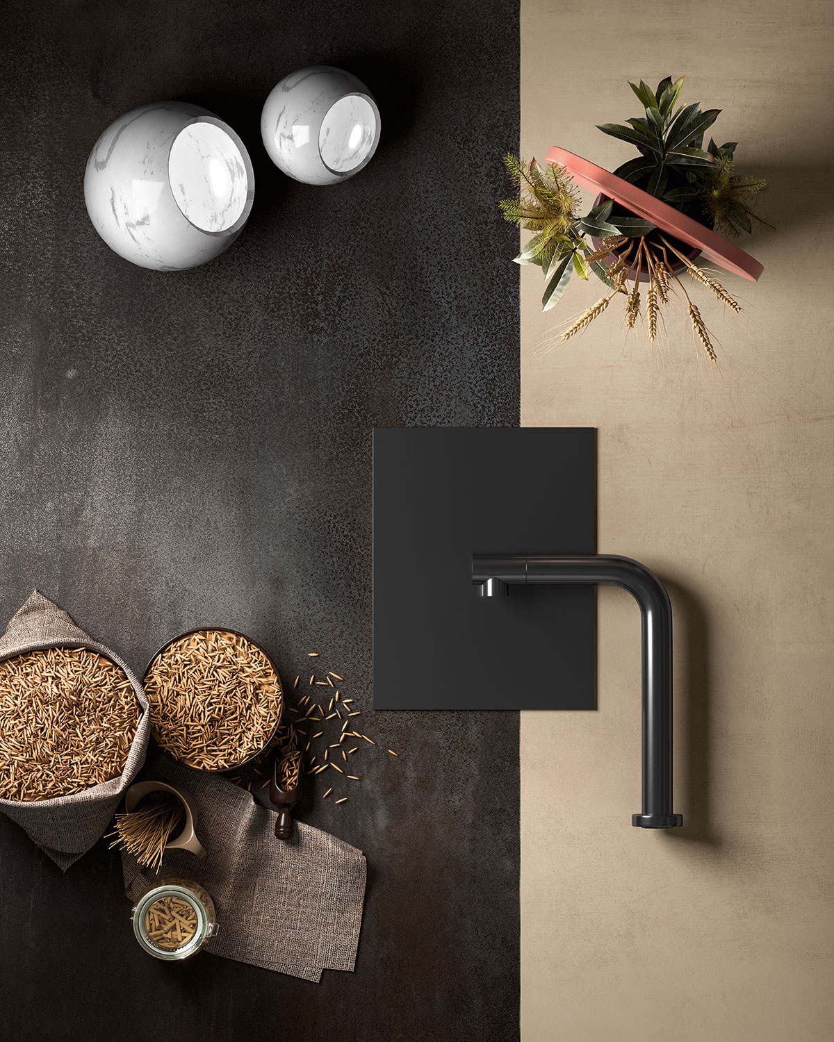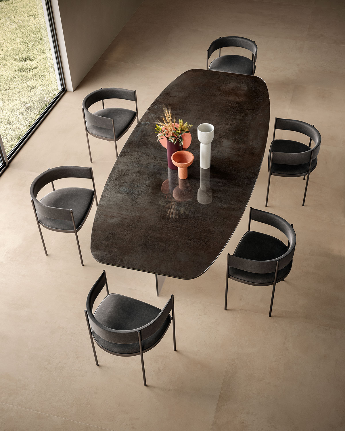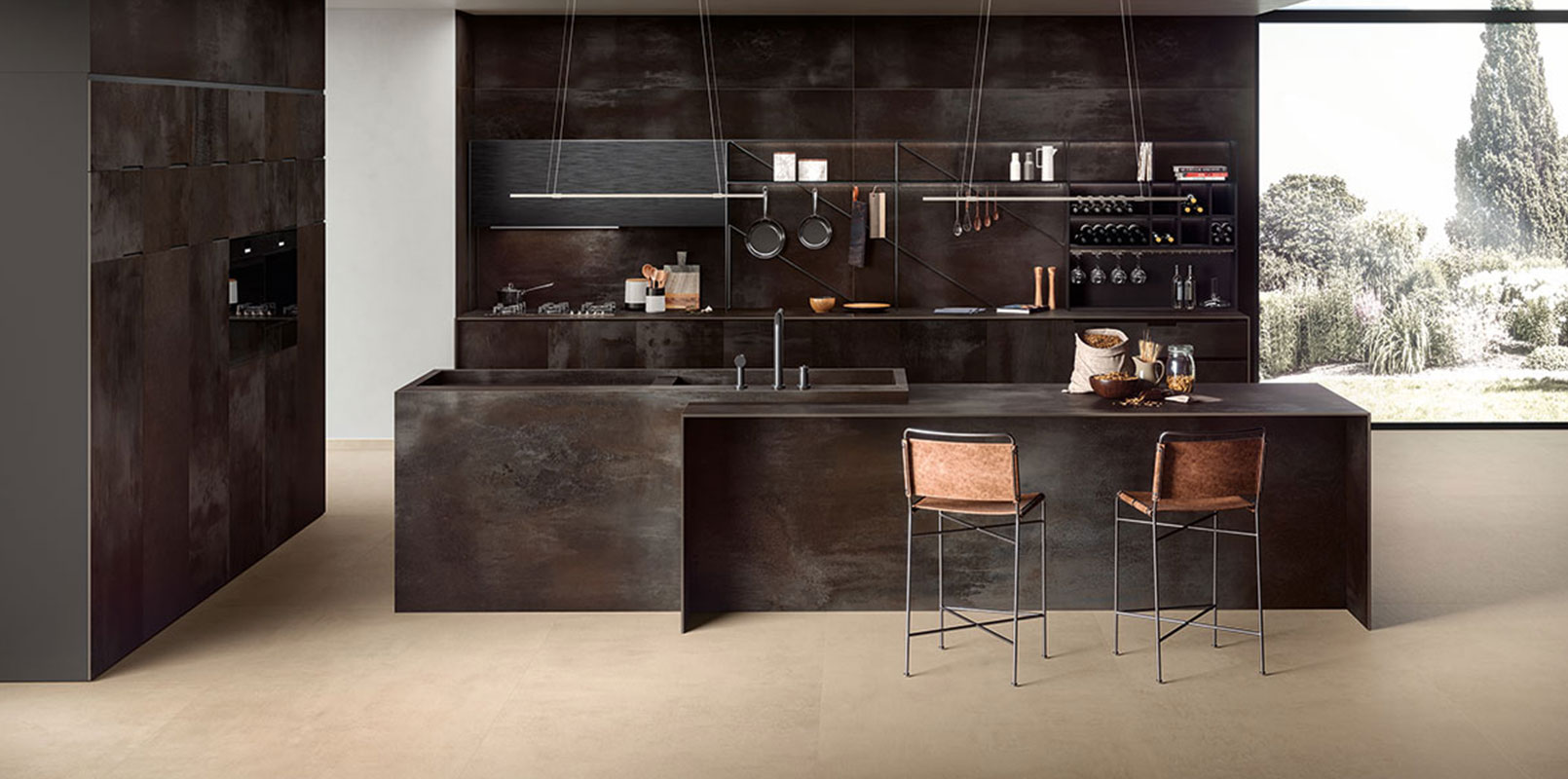 Blaze Iron metal görünümlü porselen seramik plakalar, mutfak tezgahları, adalar, masalar, kapılar, sıçratma koruyucuları ve duvar kaplamaları için idealdir. İşçiliğinin görsel gücü modern ve atmosferik ortamlar oluşturur.