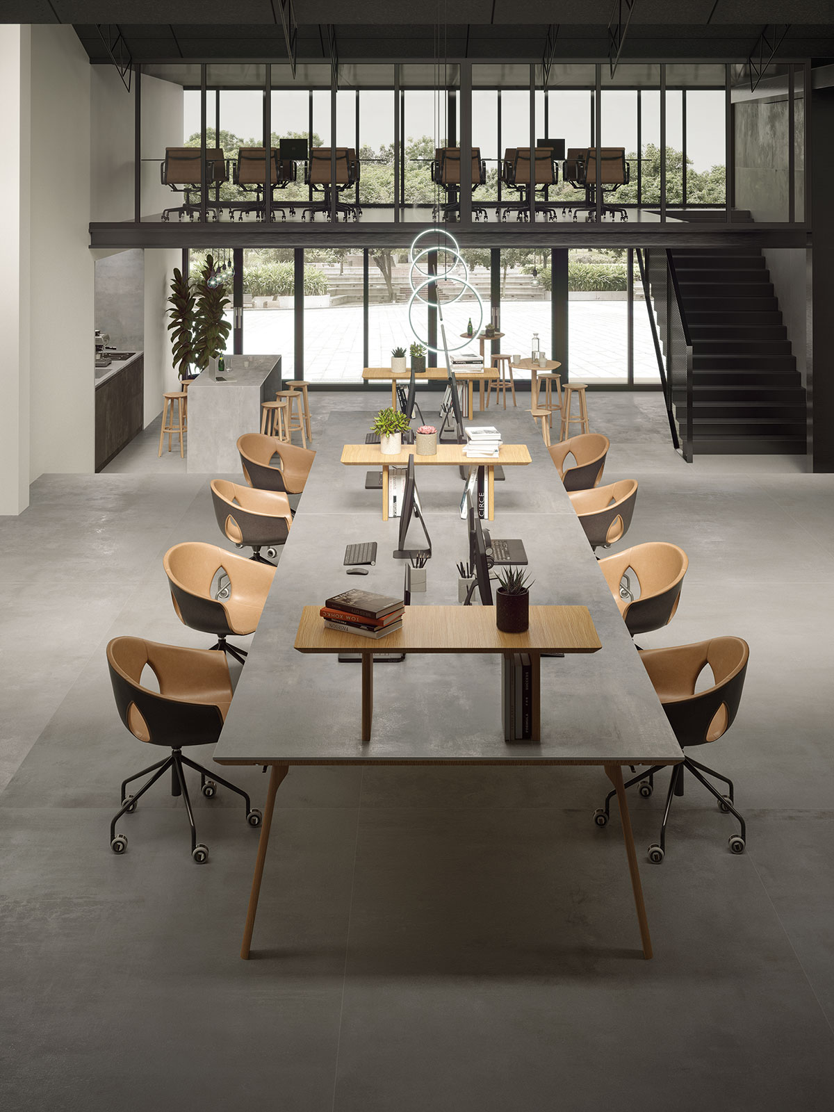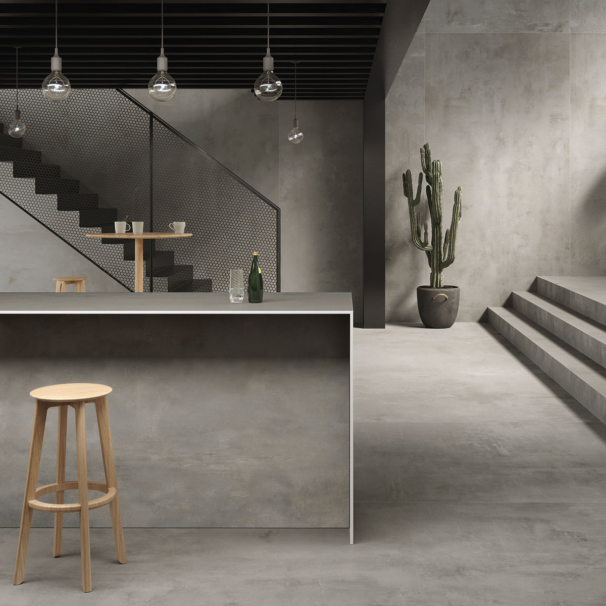 Atlas Plan'ın farklı boyut ve kalınlıklarda sunulan beton görünümlü porselen Boost Grey, hem iç hem de dış mekanlarda, özel veya kamusal alanlarda kullanım için idealdir. Bu yüzey, mutfak tezgahları, banyo tezgahları, bar/restoran tezgahları gibi alanlarda kullanılabilir.
