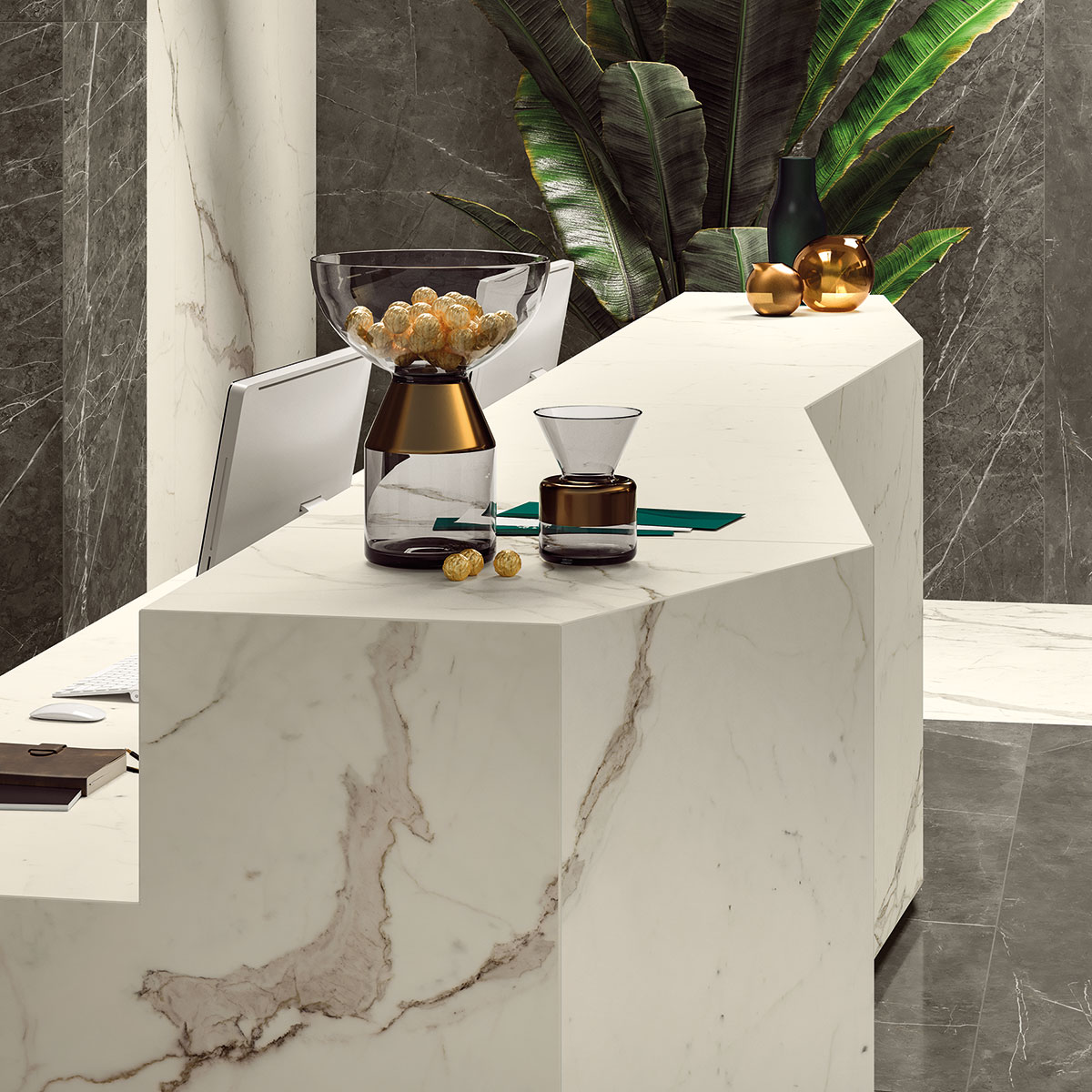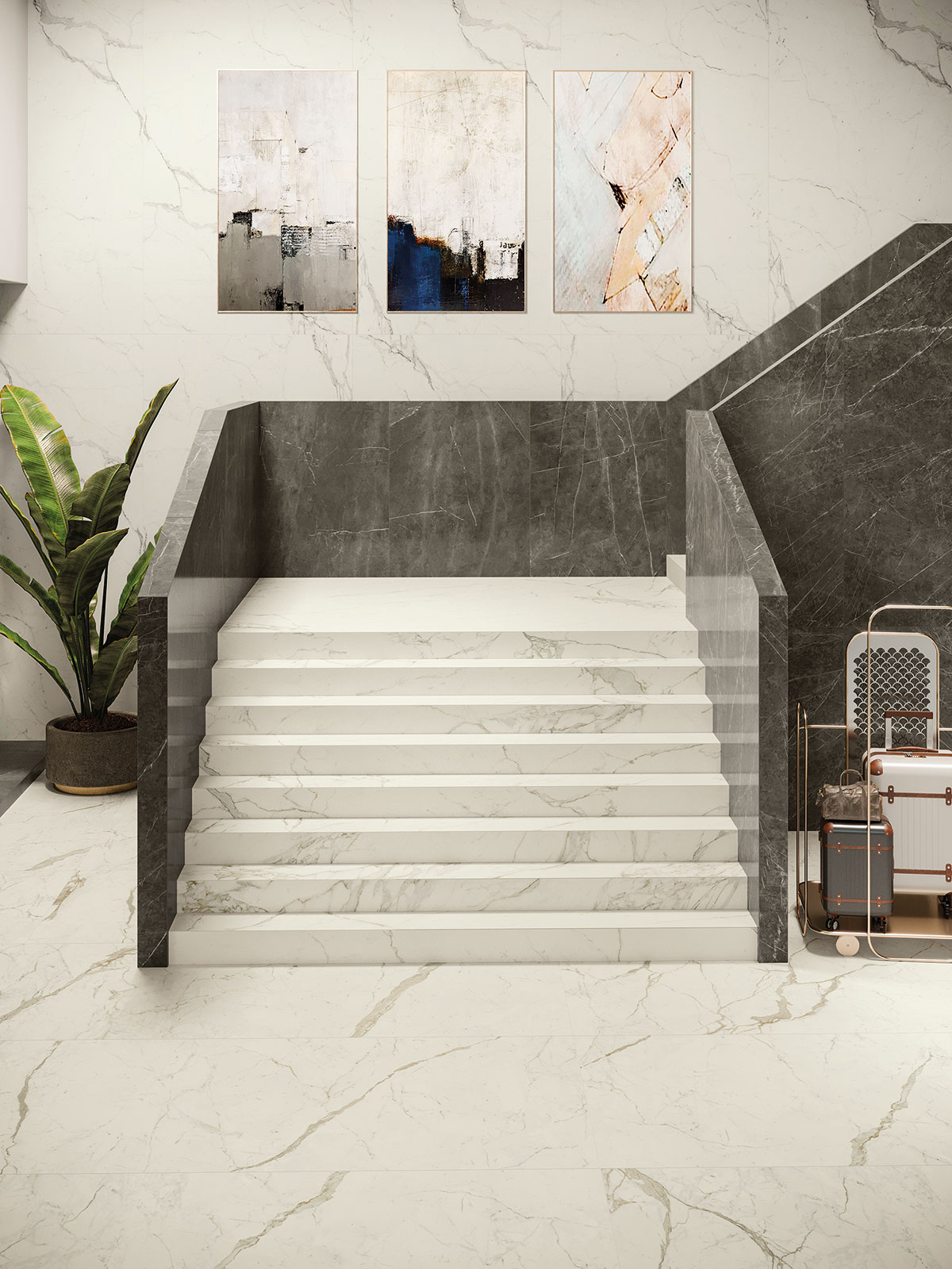 Atlas Plan'ın Calacatta Prestigio porselen plakaları, en iyi İtalyan mermerlerinden ilham alarak üretilmiştir. Bu malzeme iç tasarım projeleri için idealdir. Farklı boyutlar, kalınlıklar ve yüzey seçenekleri ile mevcuttur.
