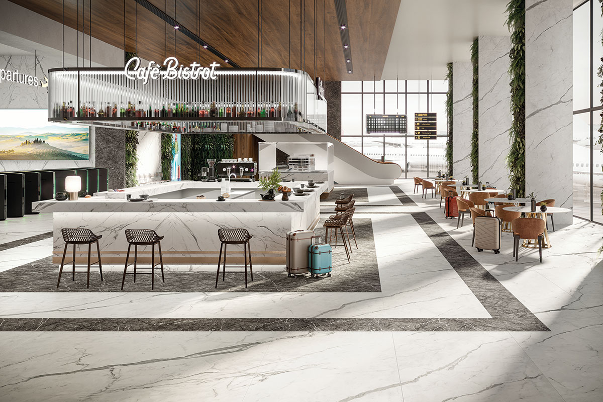 Atlas Plan'ın Statuario Supremo porselen plakaları, beyaz mermer görünümüne sahiptir ve farklı boyut ve kalınlıklarda mevcuttur. Bu plakalar, otel resepsiyon masaları, bar ve restoran tezgahları gibi birçok farklı alanda kullanılabilir. Ayrıca, mutfak tezgahları, masa üstleri, kapı ve çekmece kaplamaları için de idealdir.