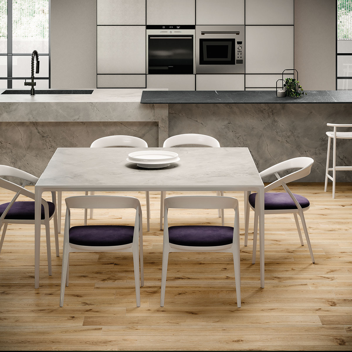 White Cloud, konut, ticari ve kamu alanlarında çok yönlü kullanım imkanı sunar. Mutfak tezgahları, tezgah araları, mutfak adaları ve yan paneller için kullanılarak, mekana estetik bir uyum ve zarafet katar. Özellikle Soapstone Dark ile birlikte kullanıldığında, mutfak uygulamalarında güzel bir uyum yakalar.